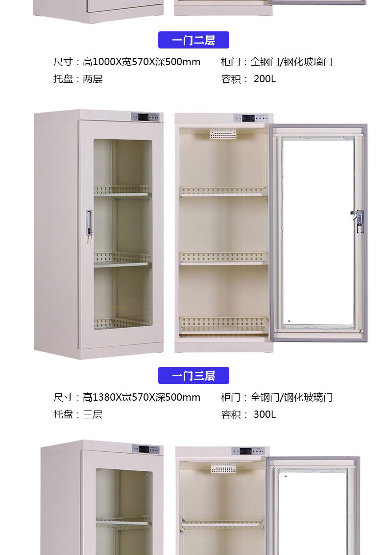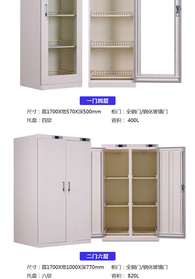 产品规格:1层1门,1门两层,玻璃门四层,玻璃门三层,全钢对开门